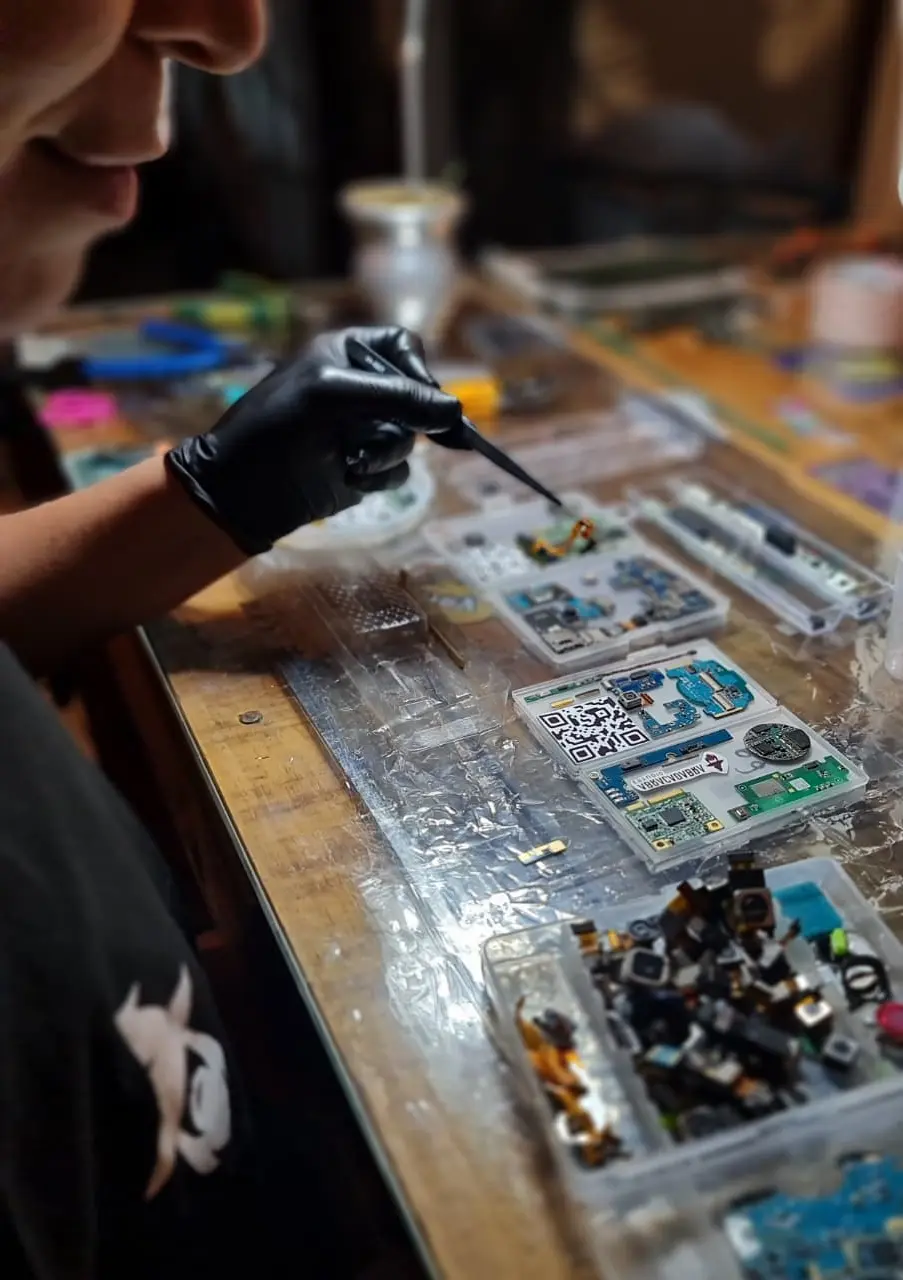 La colaboración con el equipo de Teotec es clave. Mientras ellos se centran en el diagnóstico de fallos y el mantenimiento de celulares y portátiles que sí tienen solución, yo recupero la materia prima que se descarta: